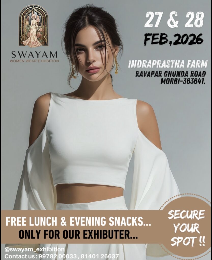 મોરબી શહેરમાં ફેશન અને પરંપરાગત વસ્ત્રોના શોખીનો માટે એક વિશેષ અવસર આવી રહ્યો છે. આગામી 27 અને 28 ફેબ્રુઆરી 2026ના રોજ “સ્વયમ – Women Wear Exhibition”નું ભવ્ય આયોજન કરવામાં આવ્યું છે. આ પ્રદર્શન સવારે 8 વાગ્યાથી રાત્રે 8 વાગ્યા સુધી ખુલ્લું રહેશે.
